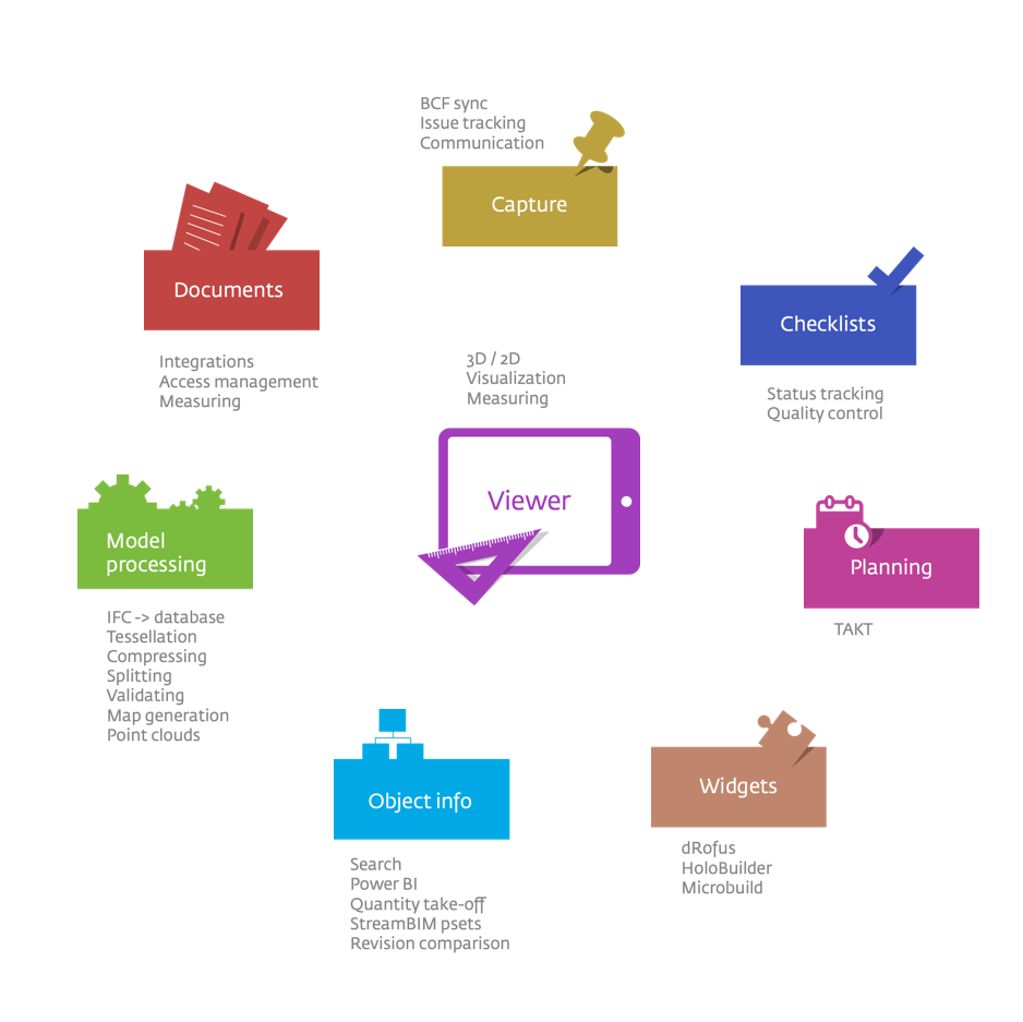 Plan and coordinate design in real-time using BIM coordination, punch lists, production planning, issue management and more.""Use StreamBIM on site! It’s easy to manage QA, Health and Safety and production progress with our Capture and Checklist modules. With StreamBIM, all your 3D models and production drawings are just a few finger strokes away on any device.""Are you missing vital dimensions on production drawing? With StreamBIM’s precise measuring tool you can find the measurements you want when and wherever you need them, on your computer, phone or tablet, paving the way for drawing free projects.""Our innovative streaming technology enables you to spin, inspect and query gigabytes of BIM files, point-clouds or dwg’s on your smartphone or tablet with ease. No project is too large and complex for true BIM collaboration in StreamBIM.""With our powerful “Realtime quantity takeoff” from models and easy integration with 3rd party software, we enable companies to take control of their highly valuable data."